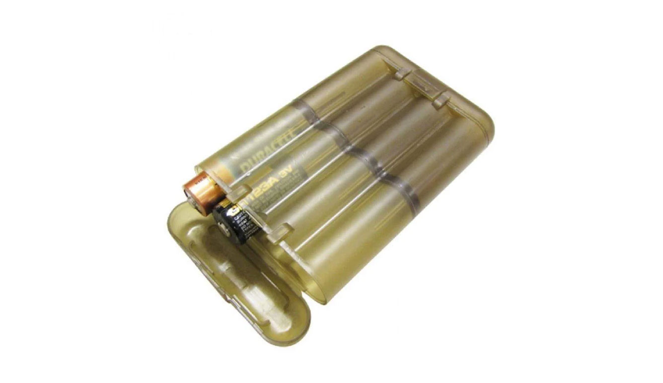 OE TECH Battery Case ( Brown / Tan ) – Each set holds up to (8) AA Batteries, or (12) AAA Batteries, or (8) CR2, or (8) CR123 batteries. – Lightweight, two tone cases slide apart to separate your spent or (dead) batteries on one side, (live) batteries on the other side.