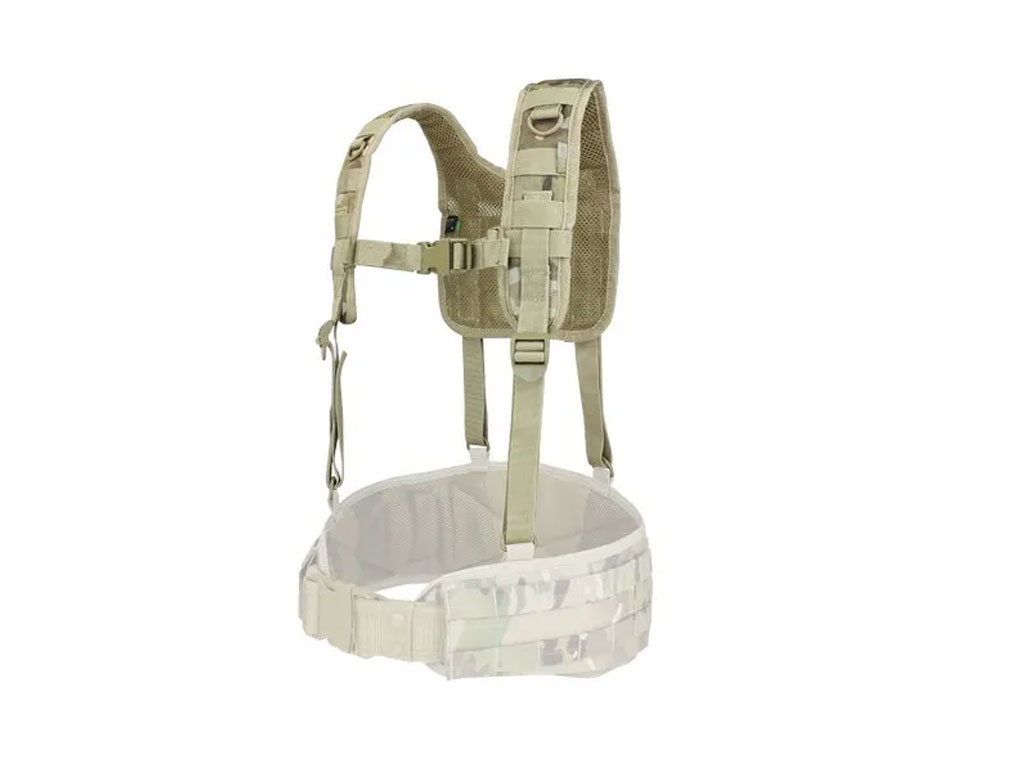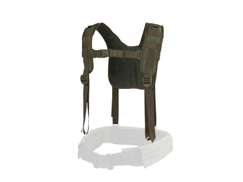 The H-Harness features durable suspender attachments that clip securely into D-rings, providing stable support while evenly distributing weight across the torso. Three rows of webbing along the back and shoulder straps keep essential gear within easy reach during training or operations. Designed for comfort in demanding environments, the wide contoured straps and breathable mesh liner ensure maximum airflow and reduced fatigue.